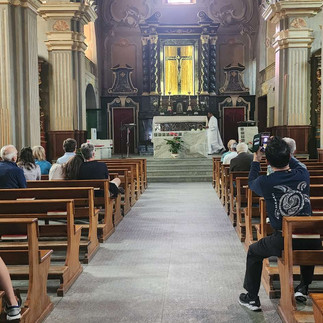 I showered, changed and made my way to the bus stop, thinking perhaps I can catch a bus to Chamonix, arriving I found that I had missed the most recent bus by about 5 minutes, next bus would be in a couple of hours, aibwas happy to wait for that, brought a return ticket and decided to take a look around town before I caught the bus. Turns out, that on Sunday the main street of Courmayeur becomes a little bit of a market, with a bunch of stalls all the way down the street. I also decided to take a look inside the small church that I had to run past when doing the CCC, it's just a small one but I felt I should check it out. There wasn't really too much to see inside this one, although it did appear there was about to be a service as a lot of people where arriving and the minister had just walked up to his podium as I was leaving.