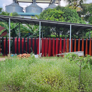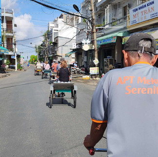 I had breakfast and was joined by everyone else, before we got onto a smaller boat that yesterday's Sampan to cruise around the town of Tan Chau by river where we got off and caught a a Rickshaw to a silk Factory, the rickshaws we caught didn't have a top or a back to them and we're pretty small so you had to bend your knees pretty close and lean forward so you didn't fall off the back of it. It was impressive to see the machines that put the silk cloth together and the way it used the patterns weave it the right way to make the pattern, I couldn't help but think how it must kind of work a bit like how the old punch card computers did.