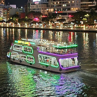 We decided to head out seeing we are only here for the one night and check out some of the sites, we ended up walking over one bridge which had the shape of a dragon weaving up and down over it, and then heading down the side of the river to another bridge, along the way stopping to notice all the boats lit up with Neon lights cruising up and down the river.