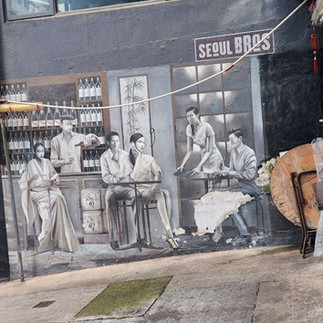 After a short rest we decided to hit up Hollywood Road and just browsed the streets. There wasn't much to see at first until we got a lot further down the road. The further down the road we got the more artwork we found painted on the walls . We popped into a restaurant called Ho Lee Fook to see if we could get a booking, unfortunately the earliest bookings for the next 3 nights was 9pm, so we just carried on to browse the streets. One thing I'm suprised about is how many forengiers there are here, we would be walking down the streets and you could just hear an American, or British, Australian, you would generally pass at leadt one or two within a block. I guess as English is one of the official languages here it's not surprising there are so many foreigneds. We looked around to find something to eat, if worse came to worse, we could ha e always just popped into 1 of the 10-15 7Eleven shops that we passed, they were everywhere in the area we were walking, I said, what's the bet we passed one right outside out hotel as a joke, little did I realise we did. Finally found somewhere to eat at a Cafe that we were passing, our meals came out pretty quick and we waited for the cutlery to come out, turns out, it's tucked away in the tables in a drawn built under them. Very cool idea, never seen it before, although I'm sure it's probably rather common over here.