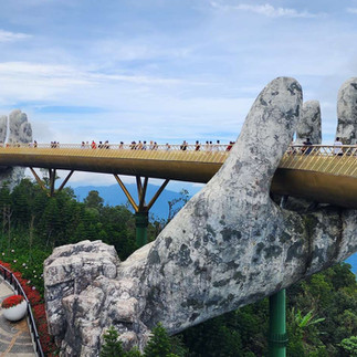 Next stop was Ba Na Hills which is a very random spot, we arrived thinking we would just see a few things, like the Golden Bridge, you ride up this long cable car up into the clouds and suddenly find yourself in what feels like a European fairytale village, complete with castles, gardens, and the famous Golden Bridge held up by giant stone hands. The best part though wasn’t the scenery, it was the surprise. As we arrived at Ba Na Hills Carpark we received a message from the parents to say they were there, we had expected to see them at night once we arrived at the hotel, but not here. I quickly sent a message back to say we were there as well as we wanted to make sure we caught up with them before they continued on.